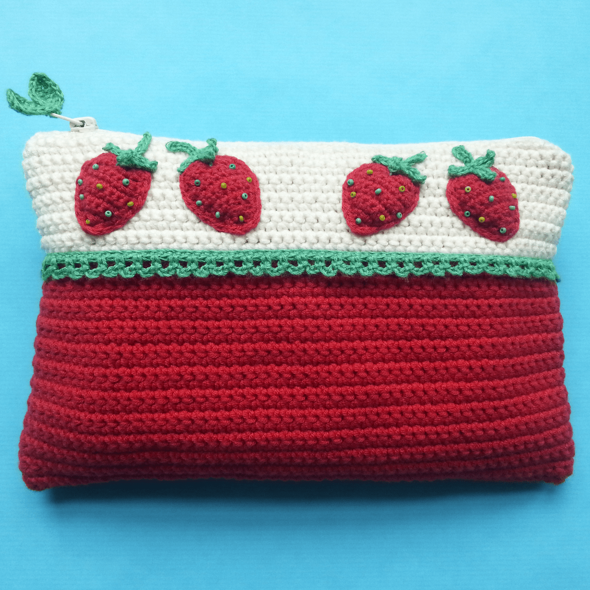 … beträgt, schlägst du 23 Luftmaschen an und häkelst in Farbe „himbeer“ 14 Reihen. Die ersten 6 davon sind übrigens für den Umschlag, den du für das Einnähen des Schnappverschlusses brauchst.