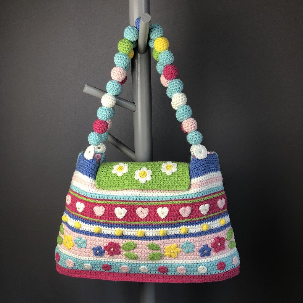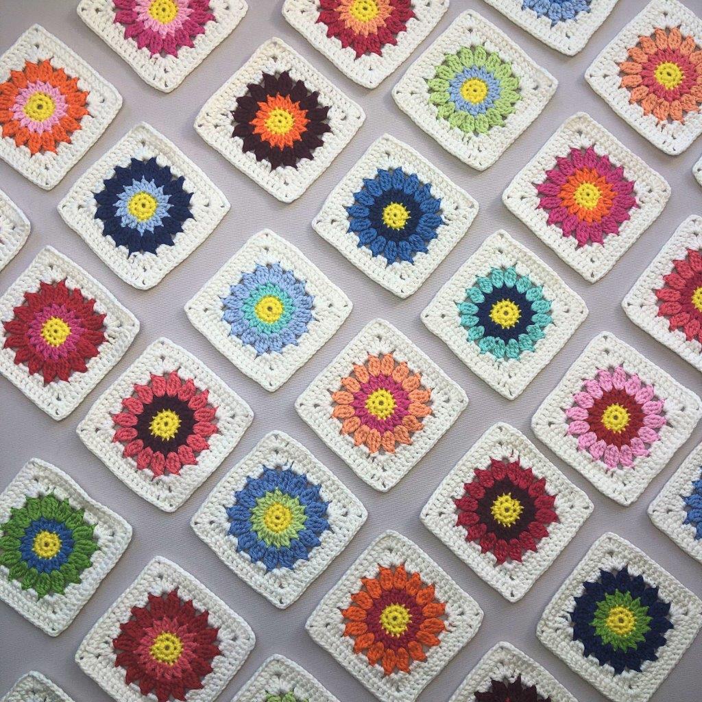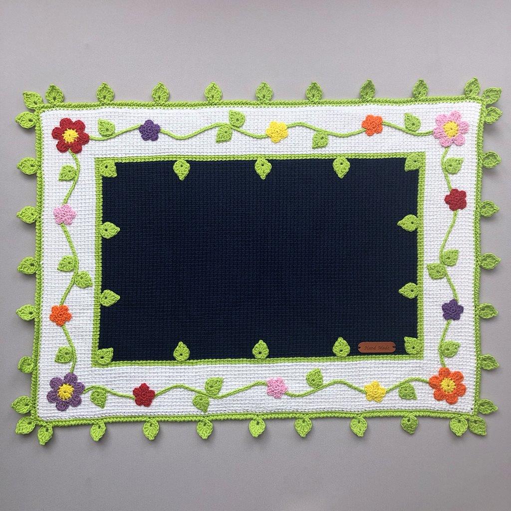 Danach habe ich die weißen Flächen grün umhäkelt … einmal den Längsstreifen …