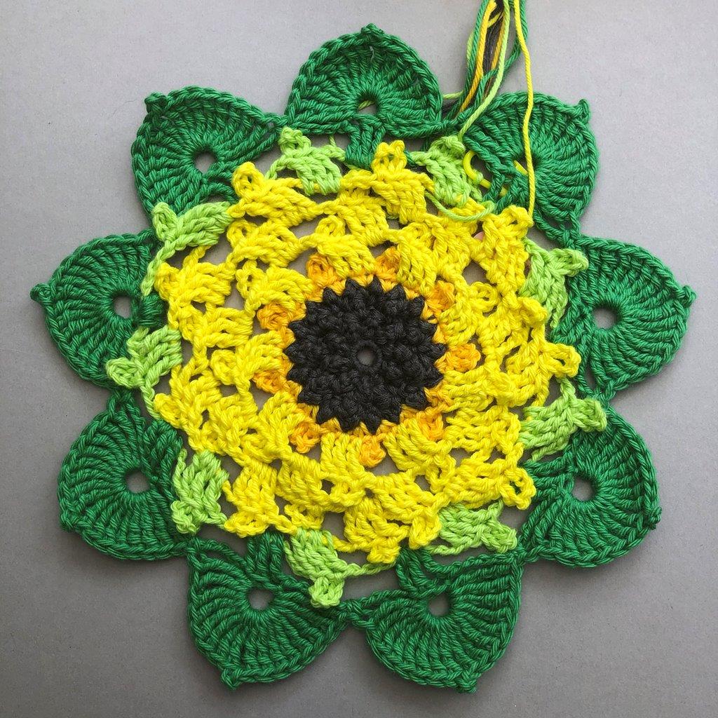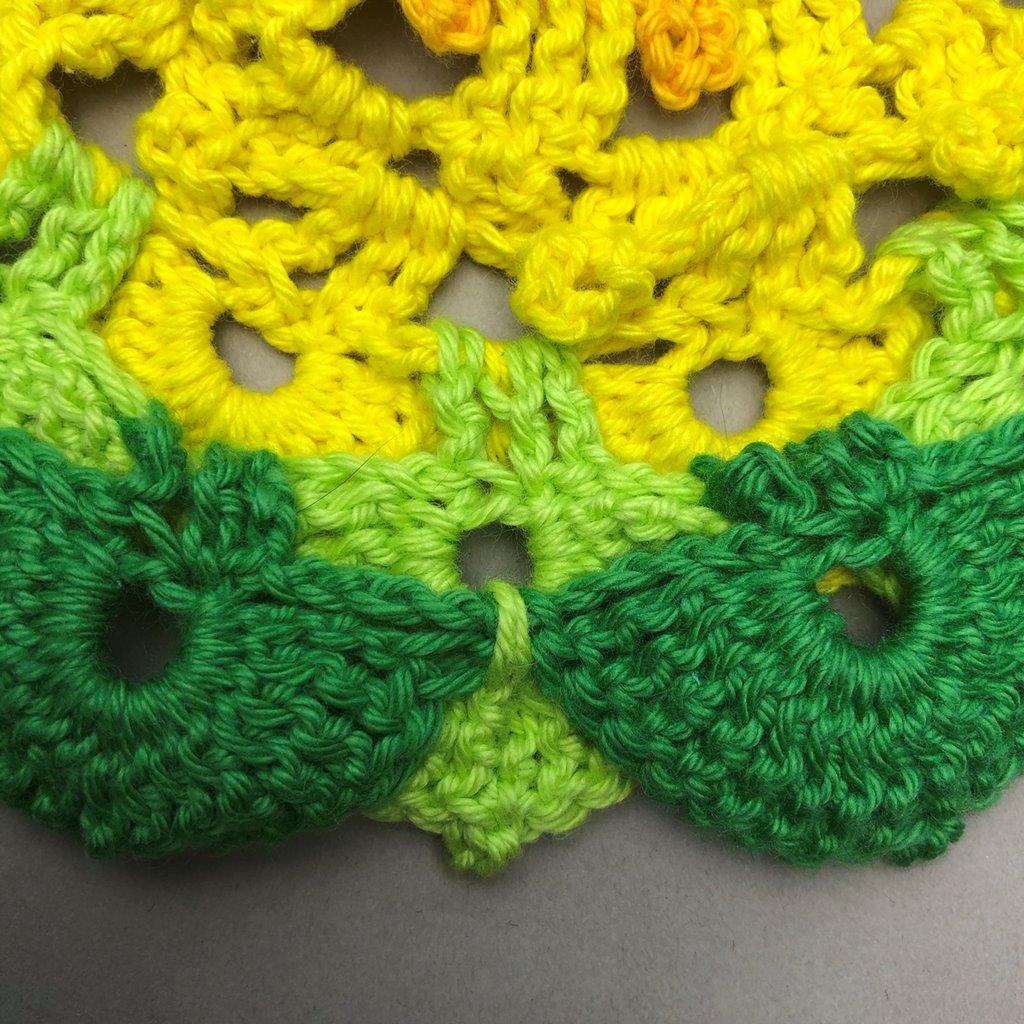 Ich habe diese letzte Runde in einem etwas dunkleren „gelb“ gehäkelt. Ist aber vollkommen unnötig … nur gelb ist auch schön!