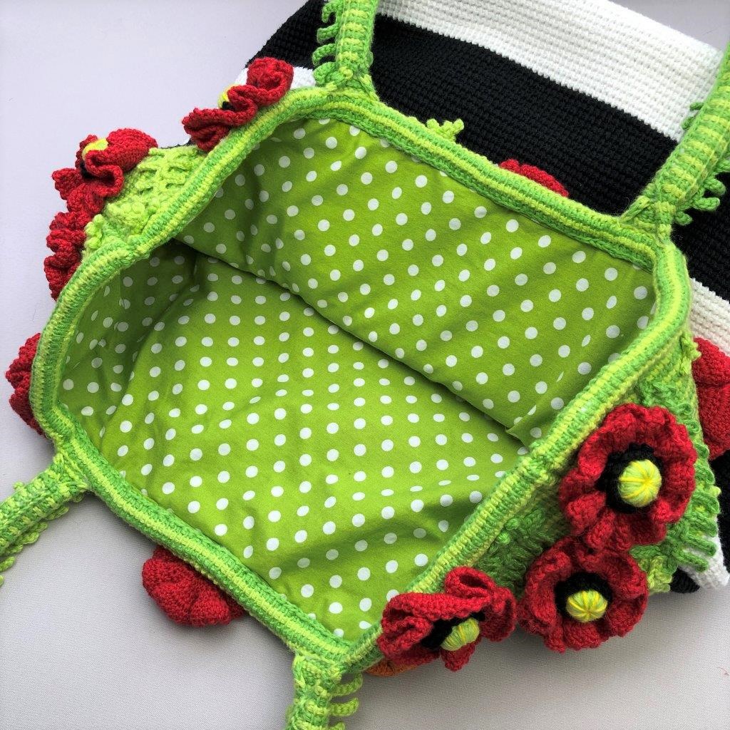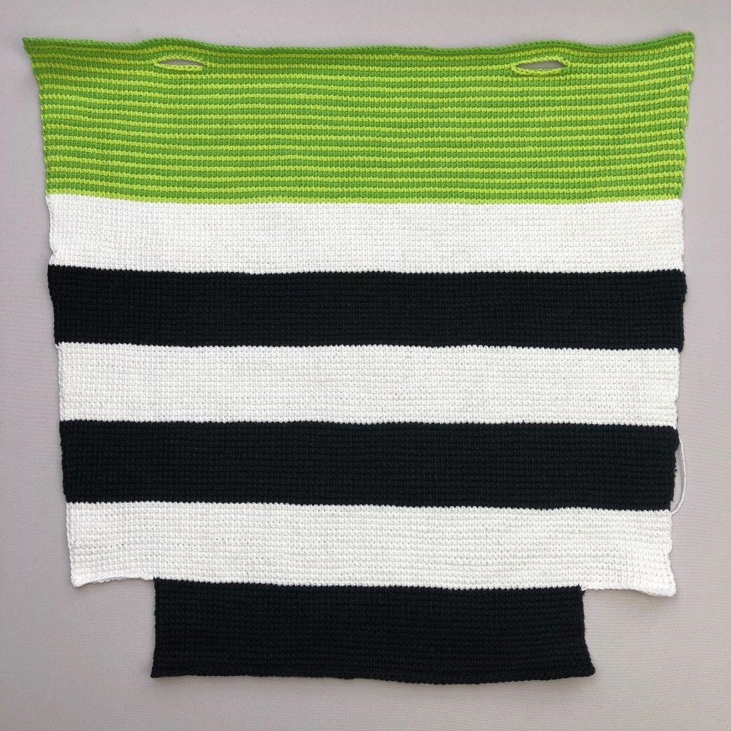 … Tasche. Die schwarz-weißen Streifen der anderen Seite habe ich gegengleich gearbeitet, womit sie so …